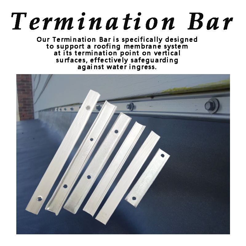 Our Termination Bar is specifically designed to support a roofing membrane system at its termination point on vertical surfaces, effectively safeguarding against water ingress. Crafted from premium extruded aluminum, Termination Bar offers unparalleled durability and reliability.