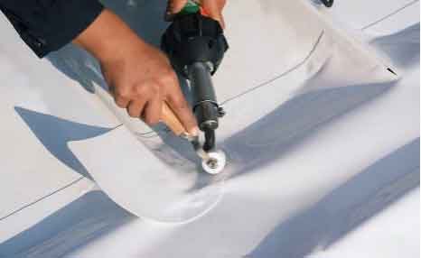 There are three installation methods for PVC waterproof membranes: mechanical fixing method, full adhesion method, and loose laying method. Seams are welded using a hot air welding process.