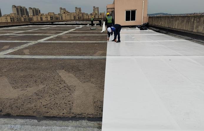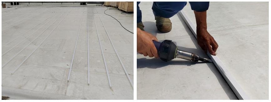 Figure 7. Pre-laying of butyl self-adhesive TPO roll material