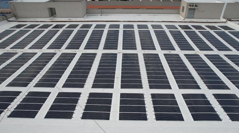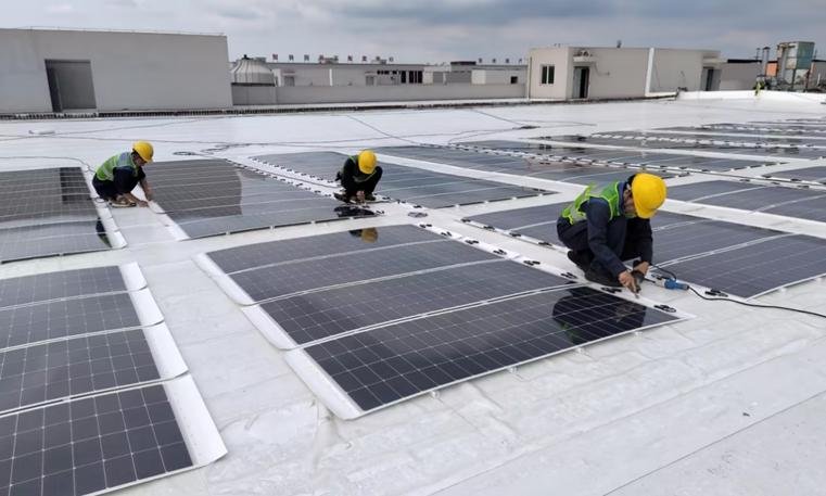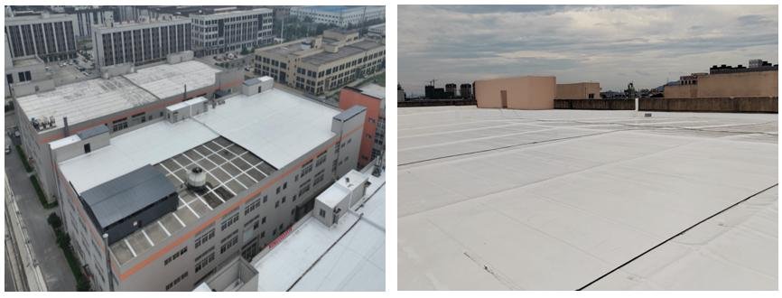 Traditional photovoltaic (PV) module systems are mostly rigid products,while PV roof systems,designed for overall waterproofing effectiveness and lifespan,often use flexible polymer waterproofing materials. Managing the connection between rigid and flexible components has always been a challenge in the on-site application of PV roof systems.This project adopted a"butyl self-adhesive TPO membrane+flexible PV module"system solution, significantly reducing structural load and simplifying installation.Installing this integrated PV waterproofing system on old or even leaking concrete roofs allows the self-adhesive TPO membrane to solve leakage problems while providing waterproofing protection for over 30 years.The use of TPO square tube heat dissipation grilles simplifies installation steps,greatly improving construction efficiency while enhancing the heat dissipation performance of the PV system and preventing accelerated aging of the roof membrane due to heat generated by PV power generation.This combined solution demonstrates excellent performance in both waterproofing and PV aspects,making it particularly suitable for existing light-load roof PV retrofit projects and worthy of widespread promotion.