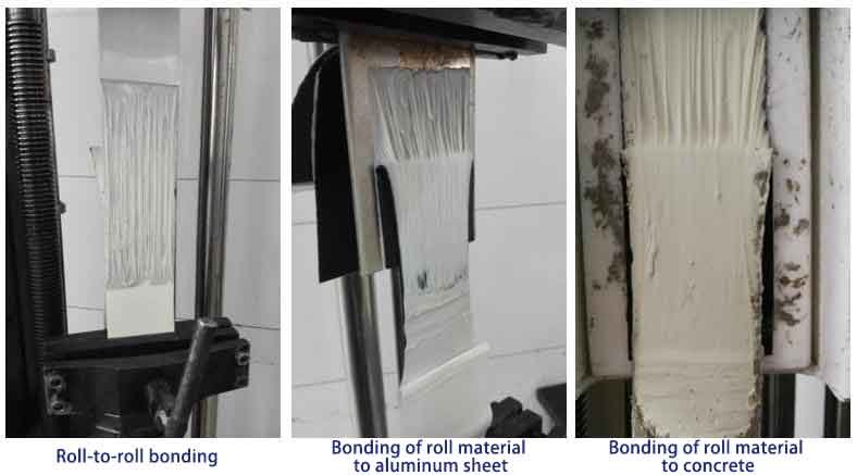 For existing roofs with limited load capacity,waterproof materials that can be directly exposed and do not require a protective layer should be selected when upgrading the roof photovoltaic system.In addition,the operation of photovoltaic equipment will generate heat,which will further increase the ambient temperature around the components and may accelerate the aging of waterproof materials.Therefore,waterproof materials with excellent durability should be selected.In order to ensure the overall benefits of photovoltaic power generation projects, the exposed waterproof layer in the photovoltaic roof system often needs to maintain a service life of more than 10 years or even 20 to 30 years,thereby reducing the later maintenance costs.Taking into account the above factors,the recommended main waterproof material for photovoltaic roof systems is a single-layer roof waterproof system with good weather resistance,excellent high and low temperature resistance,and stable and reliable overlap sealing.Common processes for single-layer roof systems include loose laying,full adhesion,and mechanical fixing. Based on the actual situation,this project selected TPO waterproof membrane with butyl self-adhesive rubber layer as the main waterproof material for photovoltaic roofs.This type of membrane,when used with a special base treatment agent,can form a full adhesion with the concrete base layer without damaging the concrete base layer,reducing the application of auxiliary materials,reducing the construction difficulty and overall leakage risk,ensuring reliable waterproof quality,and high overall cost performance.After butyl rubber is bonded to the substrate,a strong, interwoven bond is formed between the rubber and the substrate.The bonding strength gradually increases over time,resulting in excellent adhesion.Figure 2 shows the bonding effect of butyl rubber with various substrates.