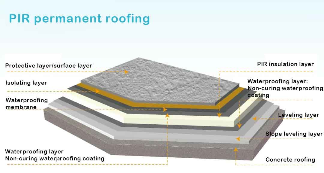 PIR spray-applied thermal insulation and waterproofing integrated roof